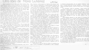 Otro libro de Nana Gutiérrez [artículo] / V. El Mercurio (Diario : Valparaíso, Chile)-- dic. 30, 1970, p. 4. .
