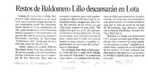 Restos de Baldomero Lillo descansarán en Lota [artículo] Crónica (Diario : Concepción, Chile)-- nov. 9, 2001, p. 16. .