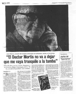 "El Doctor Mortis no va a dejar que me vaya tranquilo a la tumba" [entrevista] [artículo] Sergio Rodríguez.