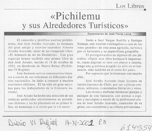 "Pichilemu y sus alrededores turísticos" [artículo] José Flores Leiva Diario VI Región (Diario : Rancagua, Chile)-- nov. 14, 2001, p. 3. .