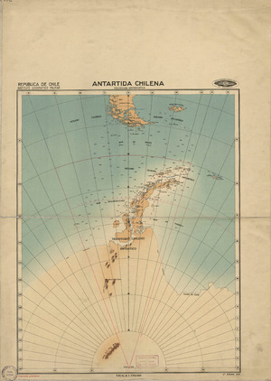 Antártida Chilena [material cartográfico] / Instituto Geográfico Militar. Santiago : Instituto Geográfico Militar, 1945. 1 mapa : color, montado sobre tela ; 56 x 44 cm, en hoja 77 x 55 cm. .