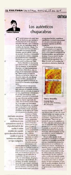 Los auténticos chupacabras [artículo] / Patricia Espinosa La Últimas Noticias (Diario : Santiago, Chile)-- jun. 27, 2014, p. 72 .