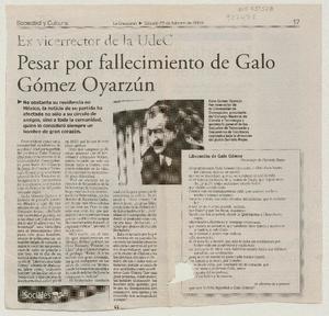 Pesar por fallecimiento de Galo Gómez Oyarzún [artículo]. La Discusión (Chillán, Chile) feb. 23, 2008, p. 17 .