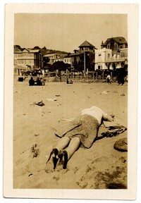 [Mujer recostada en balneario de Cartagena] [fotografía]. Cartagena : 1932. 1 fotografía : monocromo, gelatina sobre papel fibra ; 9 x 6 cm. .