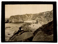 [Niño recostado en roquerío de un balneario] [fotografía]. [Chile] : [entre 1930 y 1940]. 1 fotografía : monocromo, gelatina sobre papel fibra ; 4 x 5 cm .