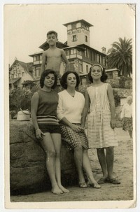 [Mujeres y joven en balneario de Papudo] [fotografía] [Fotografía de Salvador Callejas].