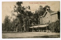 Parque Cousiño Restaurant [fotografía] / Hume y Ca. Santiago : Hume y Ca. , [Entre 1900 y 1910]. 1 tarjeta postal : colotipo, fotomecánico monocromo sobre papel ; 13,5 x 8,8 cm. .