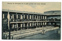 Revista de Gimnasia en el patio grande del Liceo Alemán [fotografía] Santiago : [Editor no identificado , entre 1915 y 1925]. 1 tarjeta postal : colotipo, fotomecánico monocromo sobre papel ; 14 x 9 cm. .