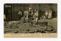 Costumbres chilenas I, Venta de frutas y legumbres [fotografía] / Adolfo Conrads. Concepción : Adolfo Conrads , 1907. 1 tarjeta postal : colotipo, fotomecánico monocromo sobre papel ; 14 x 9 cm. .