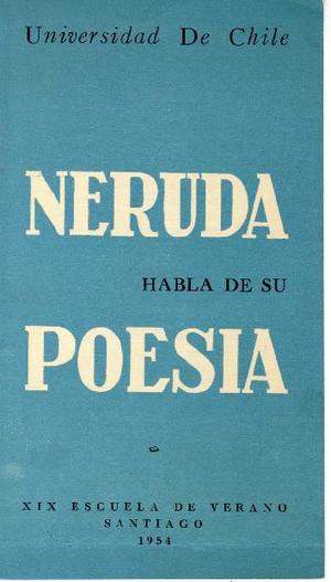 Programa de cinco conferencias, dictadas por Pablo Neruda sobre su poesía en el salón de Honor de la Universidad de Chile, los días 20 al 28 de enero de 1954.