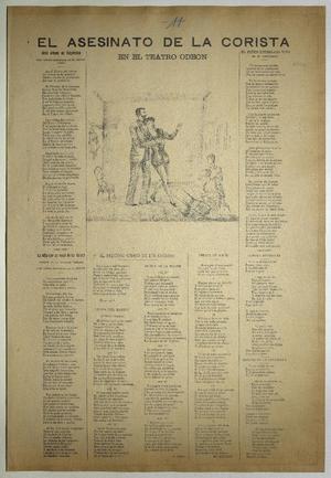 El asesinato de la corista en el Teatro Odeon / A. Reyes. [Chile] : [Impresor no identificado], [1894?] 1 hoja : ilustraciones ; 55 x 38 cm. .