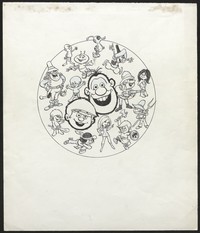 [Dibujo para portada índice Mampato N°1 al N°250] [original de arte] : Themo Lobos. Santiago : [Lord Cochrane], 1975. 1 dibujo : Tinta y lápiz ; 32 x 27,5 cm. .