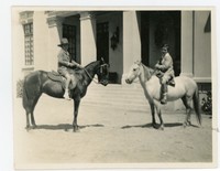 [Dos niños montados a caballo, frontis de una casona de campo] [fotografía].