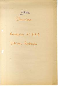 Lista de crónicas de viajes [manuscrito] / Salvador Reyes. 5 hojas ; 31,5 x 22 cm. .