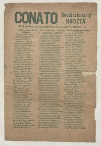 Conato : revolucionario nacizta : fué sofocado enérgicamente por el Gobierno. [Concepción] : [Editor no identificado], [1938?] (Concepción : Imprenta "El Esfuerzo") 1 hoja ; 31 x 20 cm. .