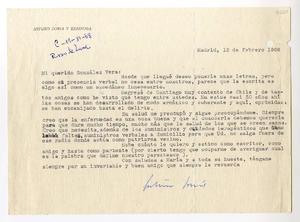 Chile, España, Argentina, Venezuela, Estados Unidos [a] José Santos González Vera Cartas, 1968, [manuscrito] / Varios autores. 9 cartas (9 hojas) ; 32 x 21 cm. .