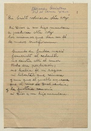 Si Cristo volviera otra vez [manuscrito] Alejandro Quintana y José del Carmen Yáñez.