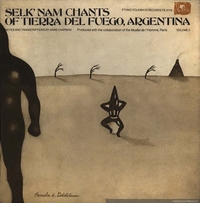 Selk'nam chants of Tierra del Fuego, Argentina [grabación] / [recorder], descriptive notes and translations of texts by Anne Chapman ; cantometric analysis by Alan Lomax. New York, U.S.A. : Folkways, 1972-1977. 4 discosanálog., 33 1/3 rpm. mono ; 12 in. + textos ([24]p. : il. ; 28 cm.)