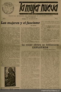 La Mujer nueva / boletín del Movimiento Pro-Emancipación de las Mujeres de Chile. Santiago : El Movimiento, 1935-1941 (Santiago : Impr. Gutenberg) 27 nos., año 1, n° 6, (mayo 1936), p. 1-2