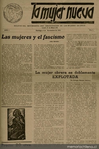 La Mujer nueva / boletín del Movimiento Pro-Emancipación de las Mujeres de Chile. Santiago : El Movimiento, 1935-1941 (Santiago : Impr. Gutenberg) 27 nos., año 1, n° 2, (8 dic. 1935), p. 1