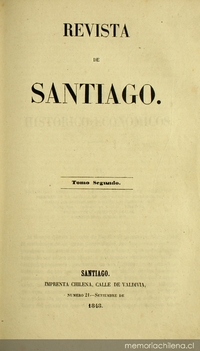 Revista de Santiago. Santiago de Chile : Imp. Chilena, 1848-1855. 8 v., tomo 2, (sep. 1848-ago. 1849)
